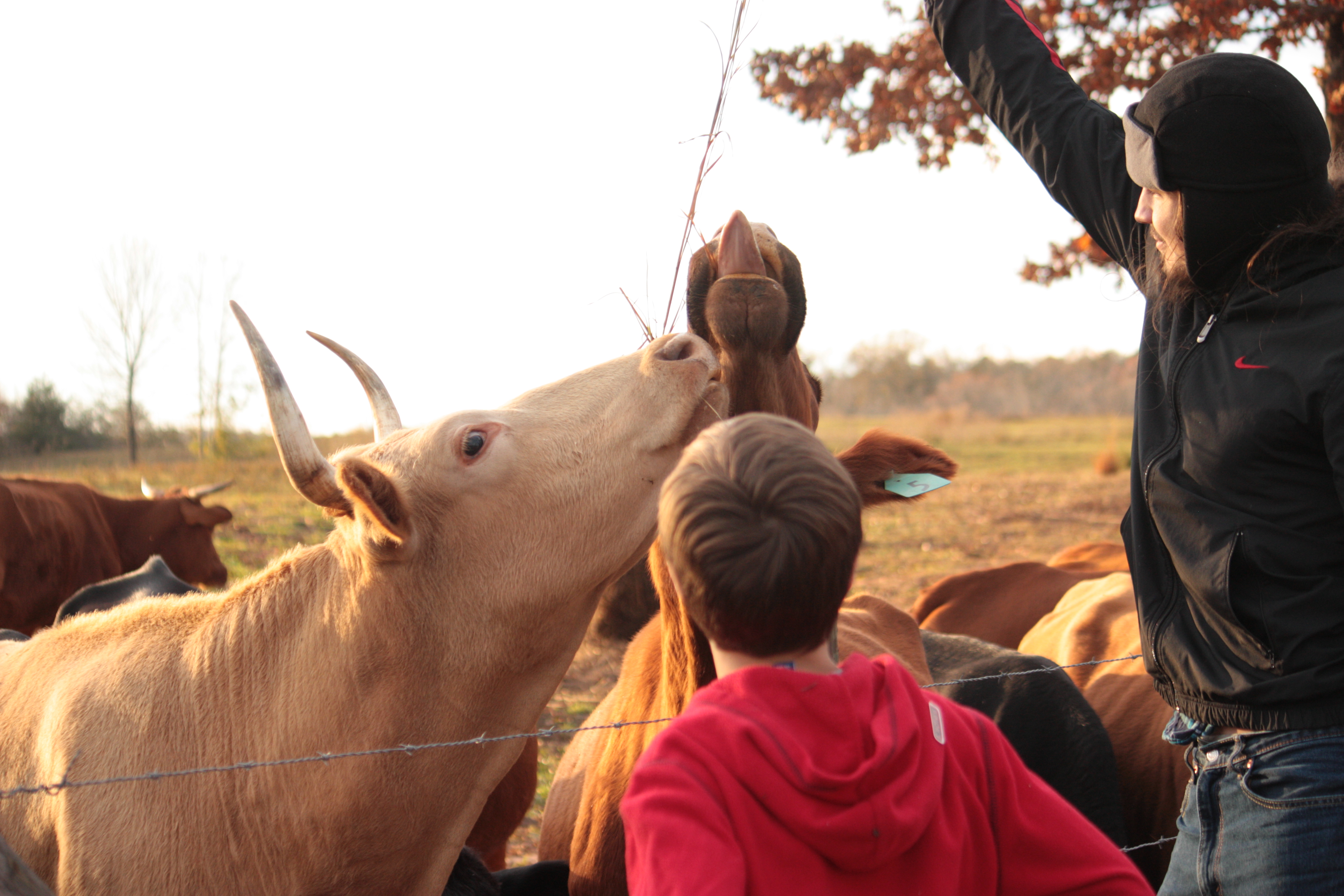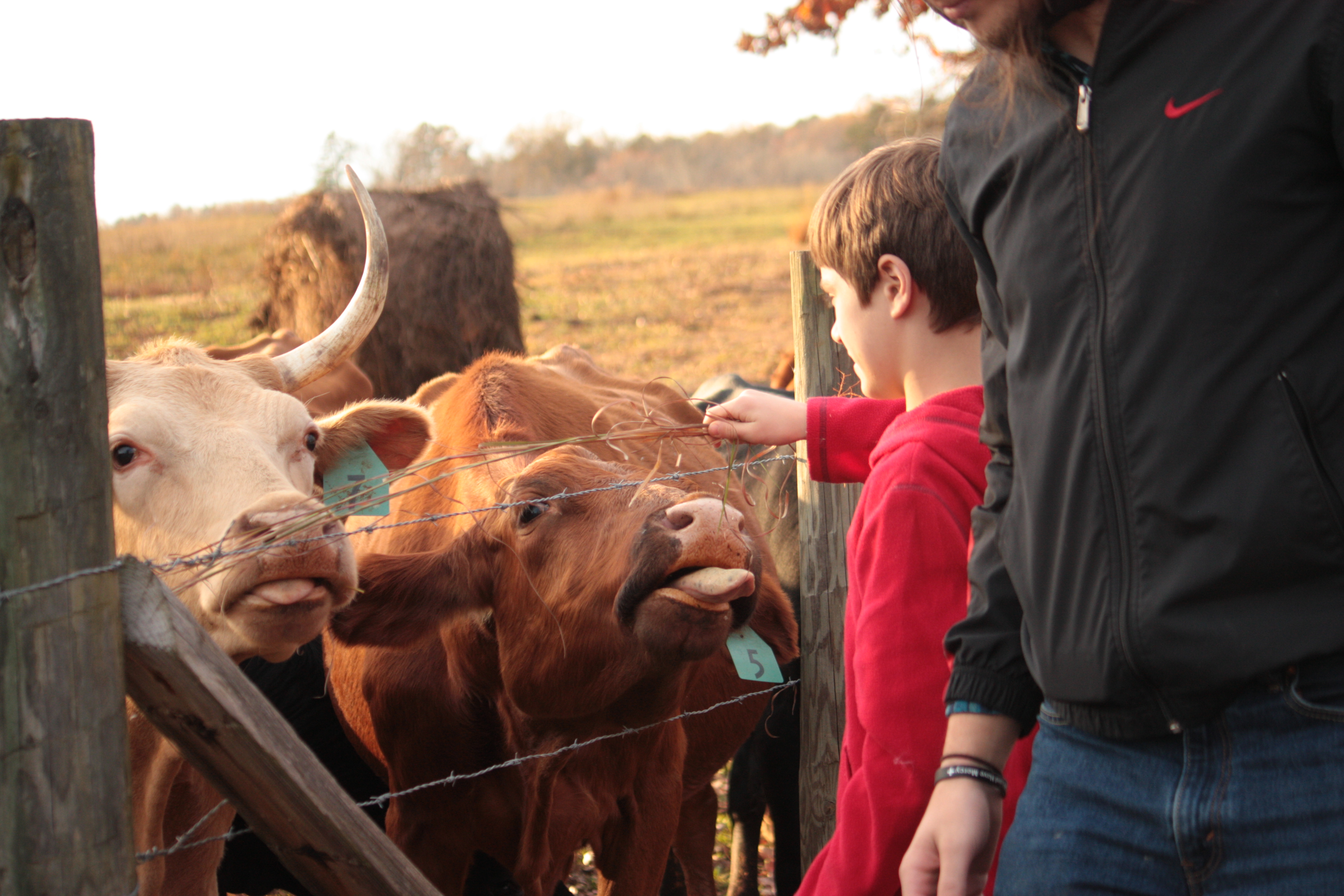 “Hold right there,” My mom said while pulling out her camera. The low and sluggish fall sun gave off the perfect shade to the cool, but crisp afternoon. This made for the best environment for picture taking. Ben was still feeding the cows, but now was trying to challenge how far the poor thing could reach for its food. The large animal reached up as high as it could with its short stubby neck and stretched out a lengthy pink tongue. It curled this tongue around the weeds and pulled them out of Ben’s hand.