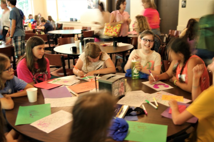 Getting ready for camp can be a bit tedious. There’s the suit cases to pack and only the coolest of t-shirts can go on the trip. There’s a costume to bring for Decades Night. There’s mom double checking to make sure deodorant was included. There’s pillows. Gabe brought his shredded pillow again which is also shedding stuffing everywhere. We put a second pillow case on that one. That was Saturday night.