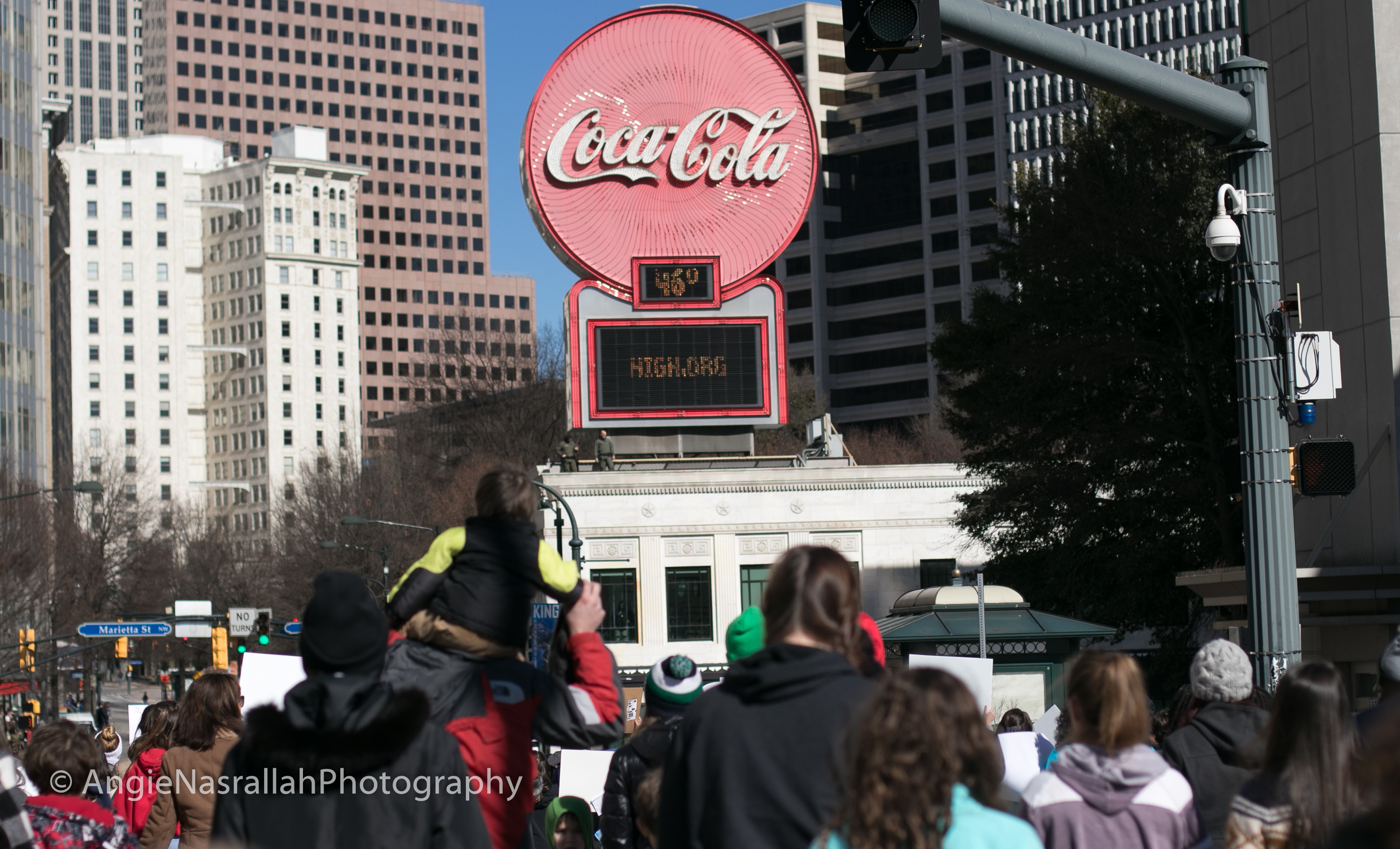 The one mile march took us right through the streets of down town Atlanta. Banners bearing the image of Martin Luther King attached to lamp posts greeted us as we strolled past the gold dome of the capitol, silently past the enormous Coca Cola sign and through the campus of Georgia State. Within 30 minutes it was over.