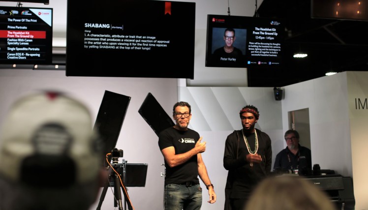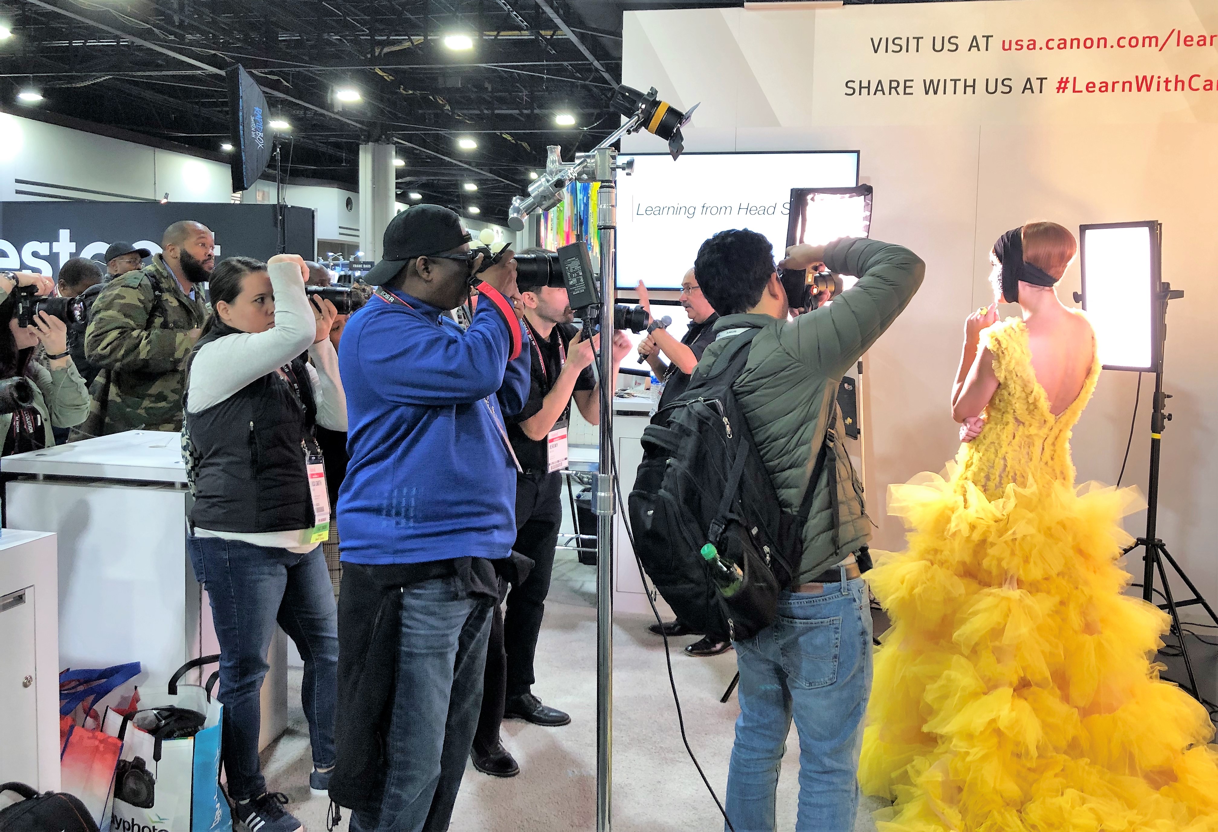 A walk into the giant exhibition hall brought us into a mecca of cameras, lenses and the tech world that supports them. At the Canon booth, there were 20 sales reps standing like soldiers ready to answer every imaginable question. Displayed in glass cases like diamond rings, an in some instances more expensive, were dozens of the newest cameras and lenses and printers and flash devices.