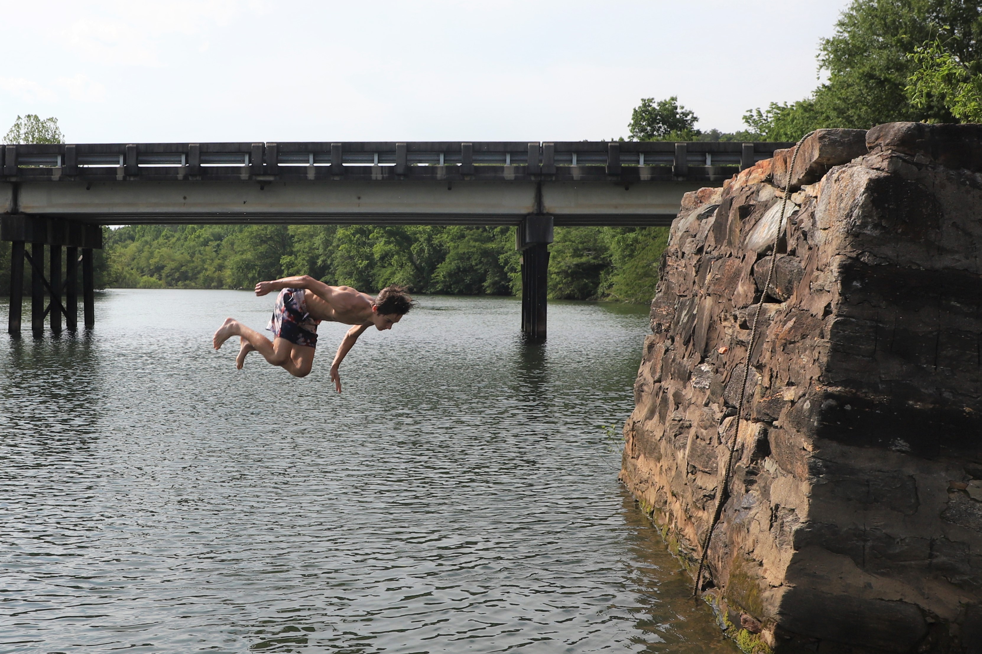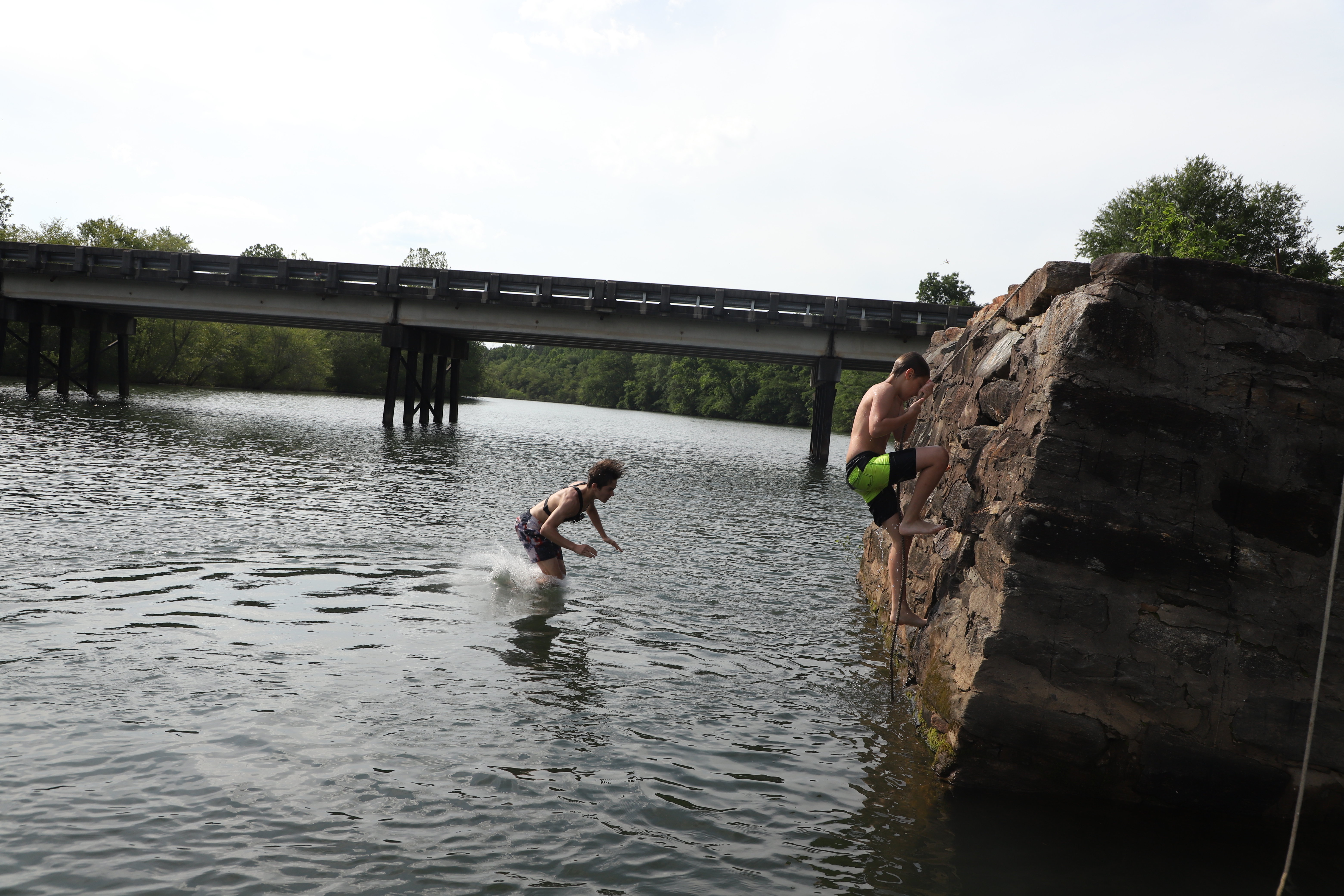 Today we’re flying, flying through the air, over water, near bridges and on to a new destination. Unlike these boys, were flying by plane. A little less exhilarating than jumping off an old piling into deep bubbling water. But, just as good for the soul.
