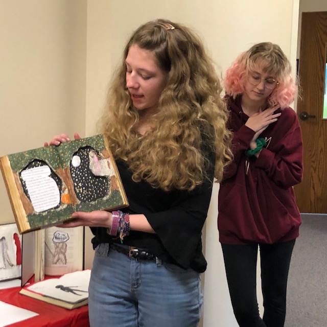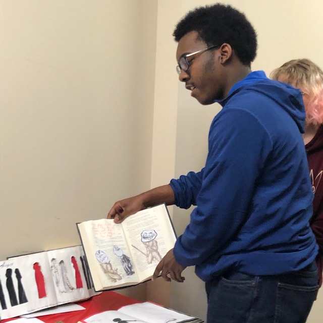 Top notch, colorful, thoughtful, and graphic are all words I’d use to describe this year’s crop of books. The symbolism was right on. One person covered a real rose in red paint and then embedded it in the pages to represent the fleeting love of the star crossed lovers. Another took a sharp knife and cut the balcony scene into the thickest part of the book. It was a true celebration of learning.