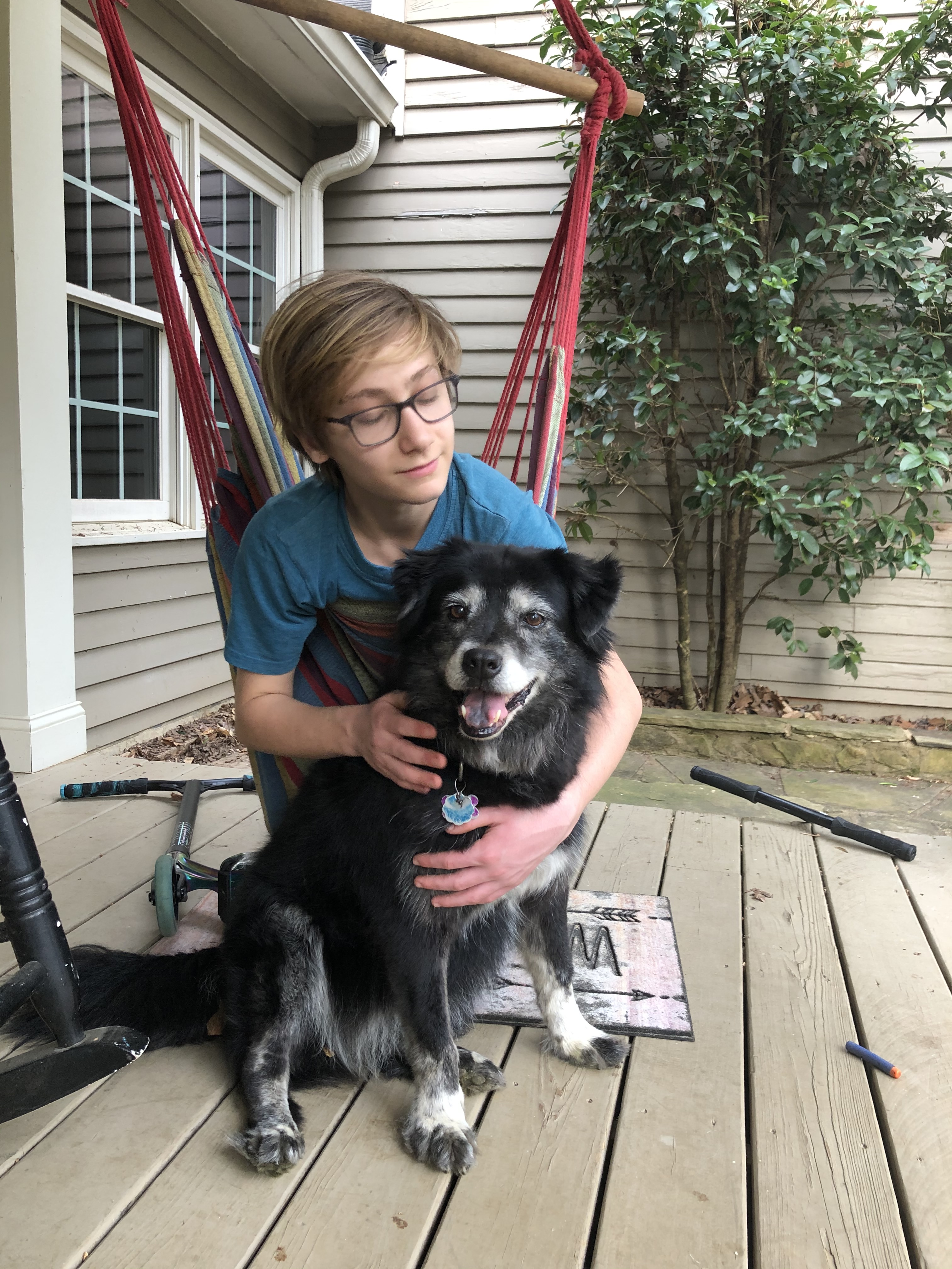 She struggled her last four weeks of life. Her breed of Border Collie /Austrialian Shepherd made her a ball of boundless energy; however, since Thanksgiving, she’d been mostly on her bed. It was a challenge for her to eat and drink. She wasn’t chasing squirrels anymore. I was determined to “ride it out” with her and hoped we’d be with her for her last breath. But, alas, she decided that a warm afternoon in early January was as good as any to take a nap on a lush bed of ivy right out front. As was fitting, Gabe, now 14, found her, peaceful and stiff, no longer encumbered by the decay of this world. He was with her at the beginning, the day we brought her home from the shelter and at the end as we patted her still body on its ivy bier.